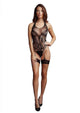 Leg Avenue Lace and Net Keyhole Crossover Halter Teddy - 1x/2x
