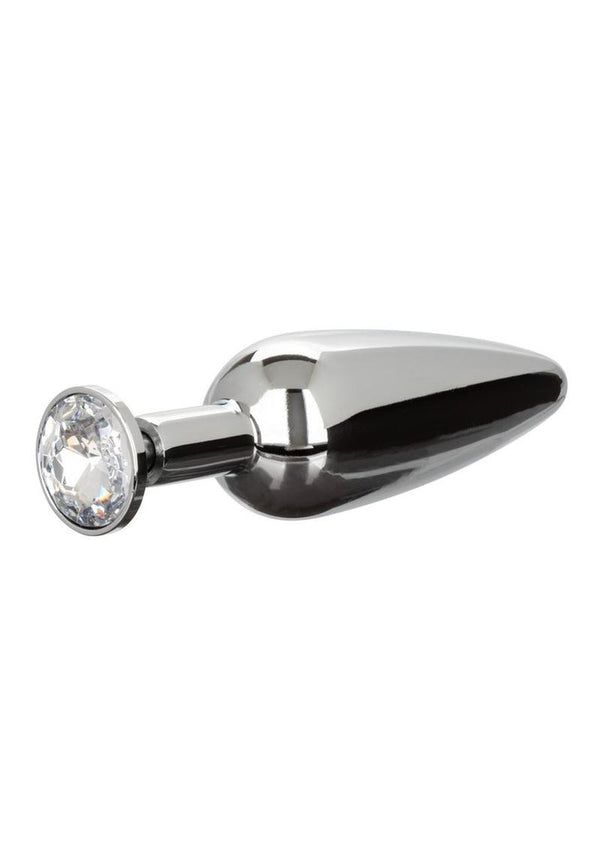 The flexible probe is made from a smooth, seamless aluminum alloy that retains heat or cold for a one-of-a-kind temperature play experience. While you expand your horizons with the sleek and slim plug, use the sparkling gem adorned base for steamy stimulation, effortless insertion and gentle removal. The view gets even better from behind with the sparkling gem base.