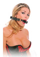 The metal ring gag is wrapped in vinyl and secured in place with an adjustable vinyl head strap and metal buckle. Pull the straps tight and your subjects mouth will magically stay open for you to do as you please!