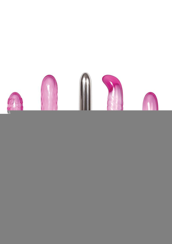 Then go wild with four different sleeve shapes for your six-inch chrome vibe that transforms from traditional shape to rabbit tickler, and from G-spot tip to tri-gasm glory with a simple switch of the sheath!