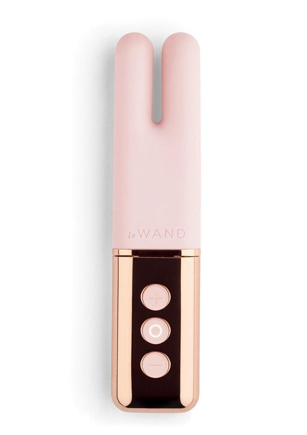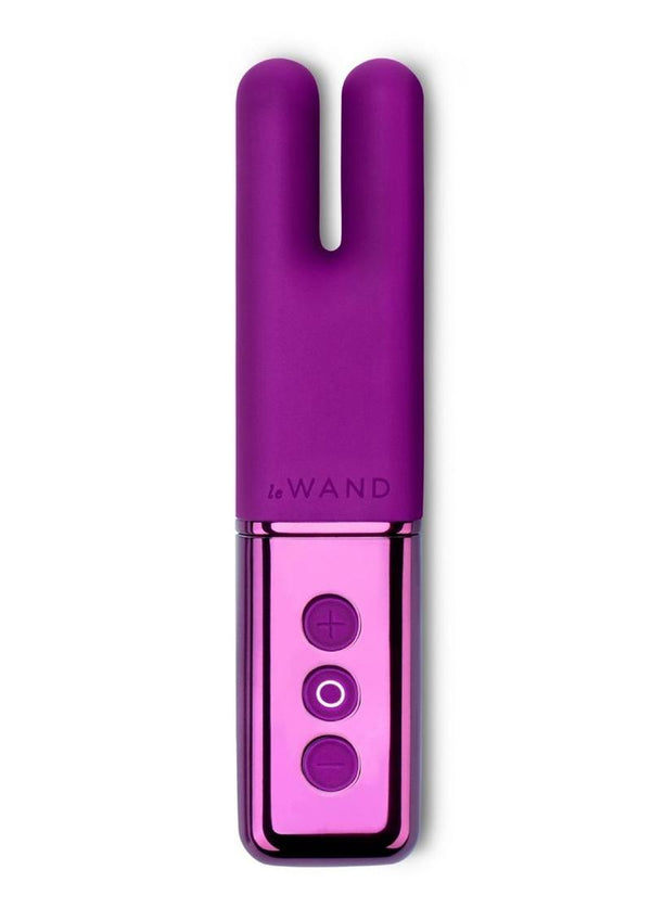 Le Wand Deux is a twin-motor, rechargeable mini vibrator for vulva owners that need additional clitoral stimulation. Made for comfort from body-safe silicone, Le Wand Deux features easy-to-use controls that breeze through 15 rumbly vibration modes and 6 arousing intensity levels. We refer to Le Wand Deux as b sensation in stereo,b because of its ability to act like headphones for the clit, nipples, or whichever erogenous zone youb re stimulating. Le Wand Deux is ideal for solo pleasure or intense couplesb play. Test your partnerb s ability to resist orgasmic pleasure with each of its powerful ends.