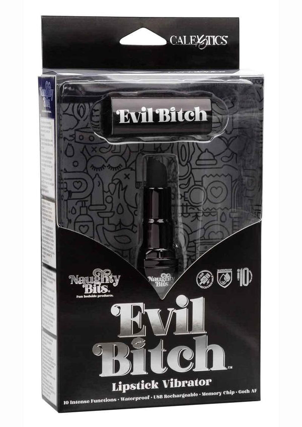 Watch out, the Naughty Bits™ Evil Bitch™ Lipstick Vibrator is naughty and nice. The edgy black lipstick design, 10 powerful vibration functions and whisper-quiet tungsten motor are made to thrill wherever your adventures take you.