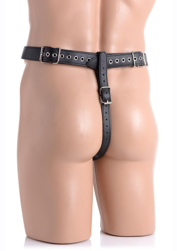 - A Chastity Harness For Leather Lovers: Restrain your submissives sexuality with this intense chastity harness; Designed to restrain your lovers package until they earn their freedom