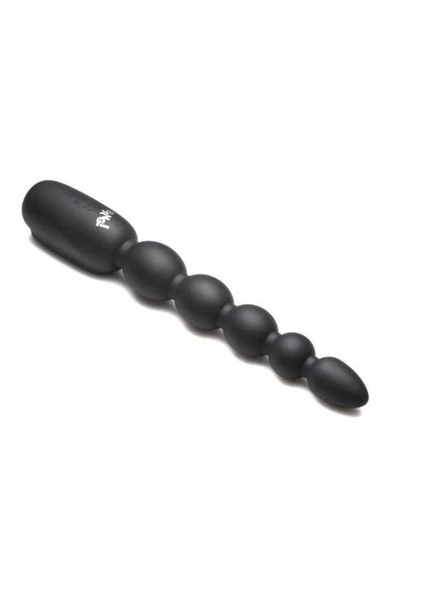 Buzz your bum with these graduated, silicone anal beads! Start with the tapered tip of the toy for easy insertion, then enjoy every one of the 5 beads as they get slightly bigger the deeper you go! The buzzing vibrations relax and stimulate your derriere and your prostate or A-spot! Choose between 3 speeds and 7 patterns of vibration and easily see what setting you're on by looking at the well-lit, easy-to-read, digital display screen! It shows both the settings and the battery life. Made out of premium silicone, it is quality, phthalate-free, body-safe, and silky smooth! Only use with water-based lubricants for best results. Take it in the shower or bath, too! Rated IPX7, it can be submerged for up to 30 minutes in water and easily handles powerful shower jets. After playing with it, wash it with warm water and mild soap, then rinse it off and spray it with a toy cleaner. Pat dry and store in a cool, dark place. Recharge using the USB cable provided. Replace remote battery as needed.