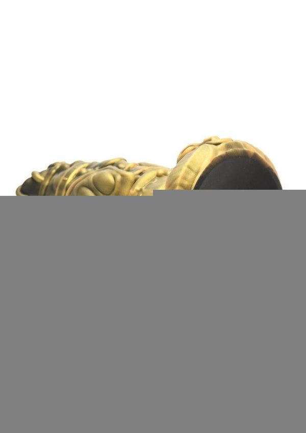 Transform your fantasies into reality with the Fantasy Dong! This magnificent King Minotaur-inspired dong is exquisitely detailed with gold tones, intricate veins, and a generous thickness that will leave you breathless. Adorned with rings, piercings, coins, and bull horns, its design offers bulges and bumps in all the perfect spots to maximize your pleasure. Crafted from phthalate-free, body-safe premium silicone, it promises a firm yet flexible feel. The strong suction cup base ensures it stays put on any flat surface, while its compatibility with most strap-on harnesses lets you enjoy endless possibilities with a partner. Unleash your fantasies with this one-of-a-kind creation and bring to life your kinky cosplay, fantasy roleplay, and solo or partnered monster love!