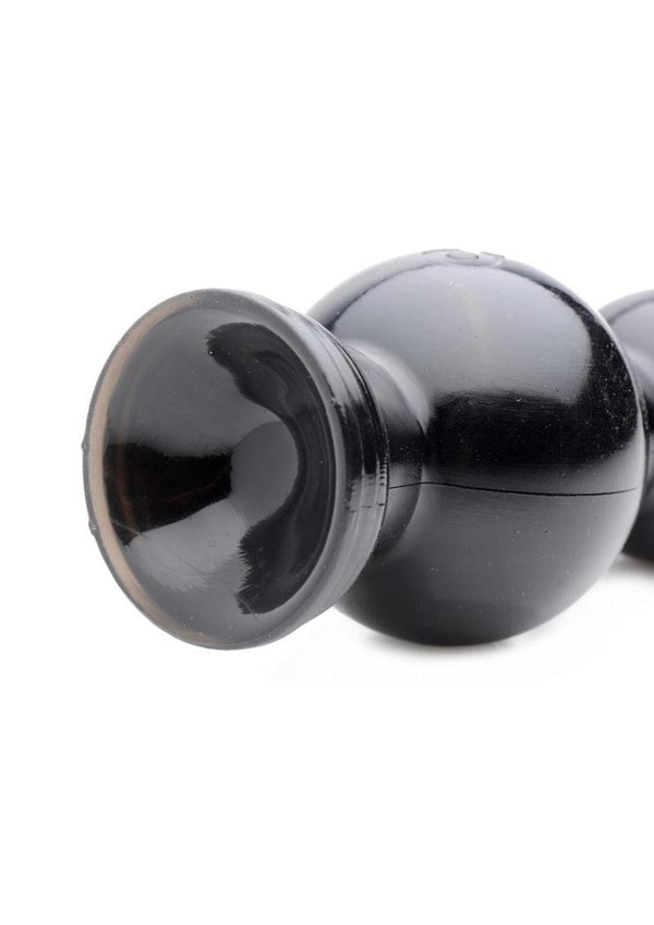 The biggest anal beads you will ever encounter, these eight smooth bulbs present a challenge unlike any other! Interested in anal stretching or gaping? Even a beginner can use this flexible tool, with a small, tapered starting point and gradual increases in size. Bold numbers on each round ball let you know where you are in your progress. Suction down the base to a hard, flat surface for solo use or with a partner. The sleek, phthalate-free material is compatible with water-based and silicone lubricants and cleans off after use with mild soap and warm water .