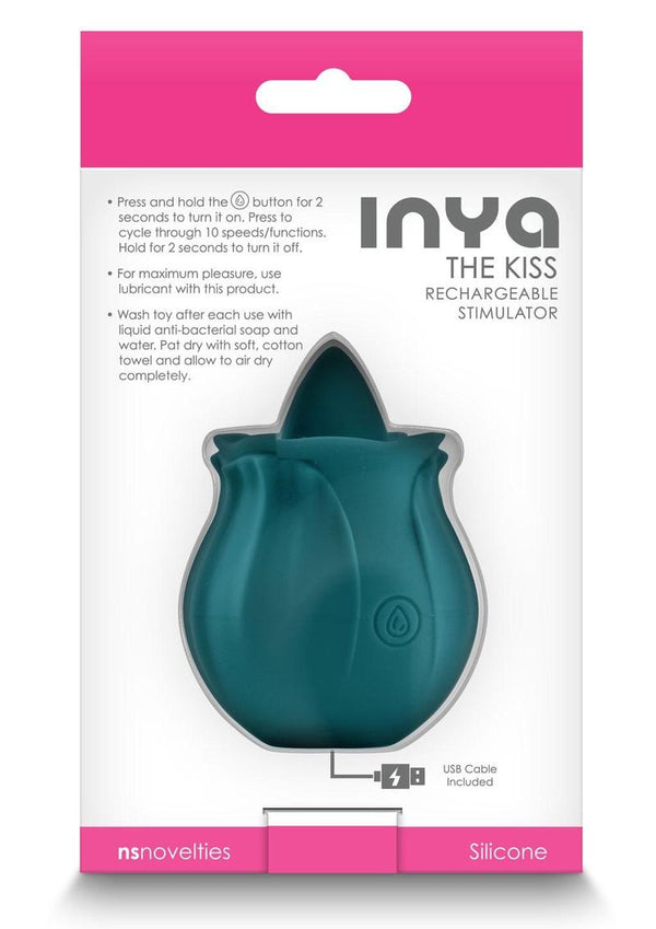 Kiss by INYA. Beautifully crafted in an eye-catching rosebud design, the Kiss stimulates the clitoris with rapid tongue vibrations for an intense climax. Made of soft silicone it is rechargeable and travel friendly.