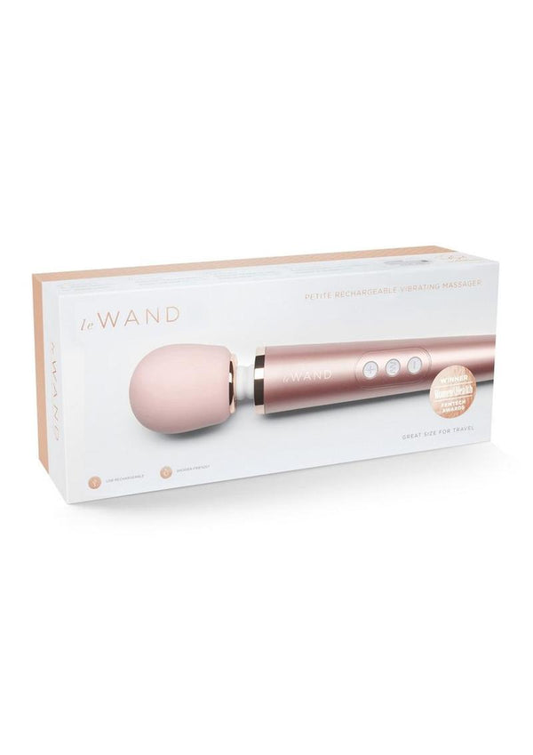 Winner of the Womenb s Health FEMTECH awards, Le Wand Petite Vibrating Massager is smaller in size, but big on power. This smaller version of our iconic, powerful wand features 10 rumbly vibration speeds and 6 vibration patterns. The sleek and stylish design provides focused vibration in the head of the wand. The user-friendly size of Le Wand Petite is great for those new to vibrating massagers. The lightweight, USB rechargeable, and shower-friendly design make it a perfect travel companion for those who donb t want to leave home without their favorite wand-style vibrator.