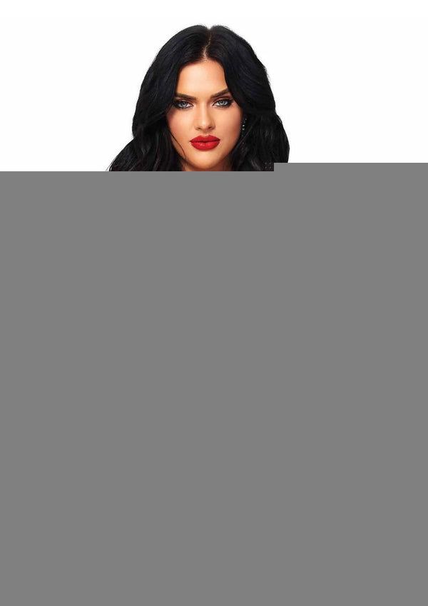 Leg Avenue Seamless Net and Lace Dual Strap Halter Dress with Faux Lace Up Back