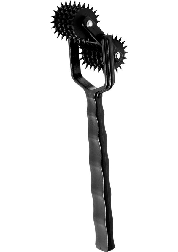 Experience a light side of BDSM with a unique pinwheel with 10 rows of sensation spikes! Dual wheels spin 360 degrees, allowing you to feel every pinprick. Blindfold your lover and run this delightfully simple toy over the sensitive areas of their body. An easy-grip handle makes this tool feel like it is at home in your hand. Send shivers from head to toe with this unique instrument for teasing the senses.